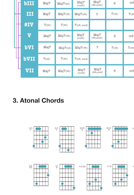 With a total of 106 pages, 45 licks, 332 atonal chords, 10 studies, poly arpeggios, and 4 exclusive Backing Tracks, this book represents a huge step beyond, and a must have for the serious contemporary guitarist and musician.