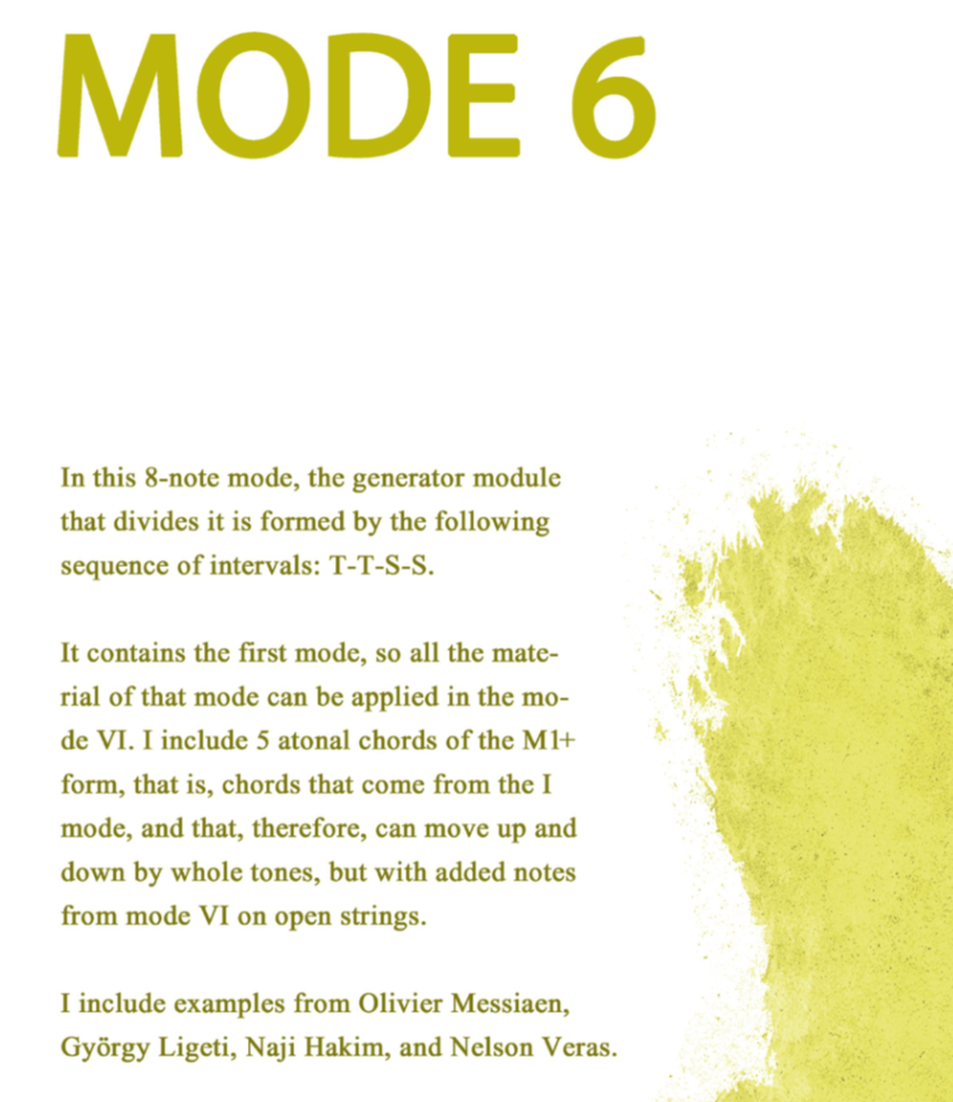 In this sixth volume of the Messiaen Modes for Electric Guitar book series, Rodrigo De la Prida dives again into a refreshing universe of multiple possibilities.