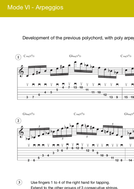 In the same way as in the previous books, you will find a deep exploration of the harmonic content that this symmetric mode provides. Melody, harmony, and rhythm; different guitar techniques, such as tapping, alternate picking, legato, and string skipping; all the tools that a serious musician needs to delve into the rich sonic legacy that the French composer inherited us.