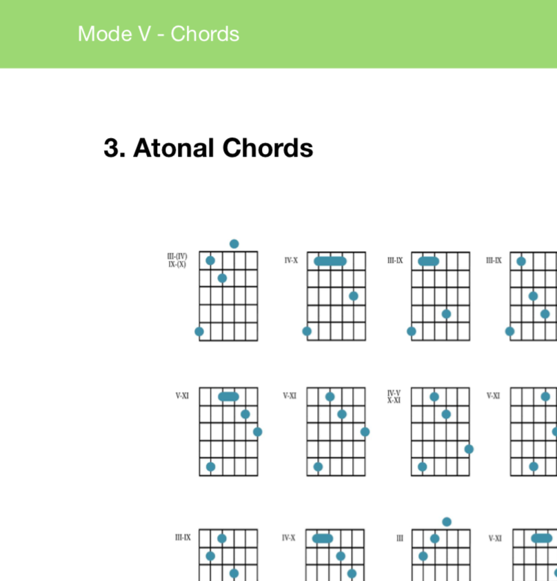 With a total of 95 pages, 45 original licks, 168 atonal chords, studies, poly arpeggios, intervals exercises, and 18 backing tracks, this book represents a huge step beyond, and a must have for the serious contemporary guitarist and musician.