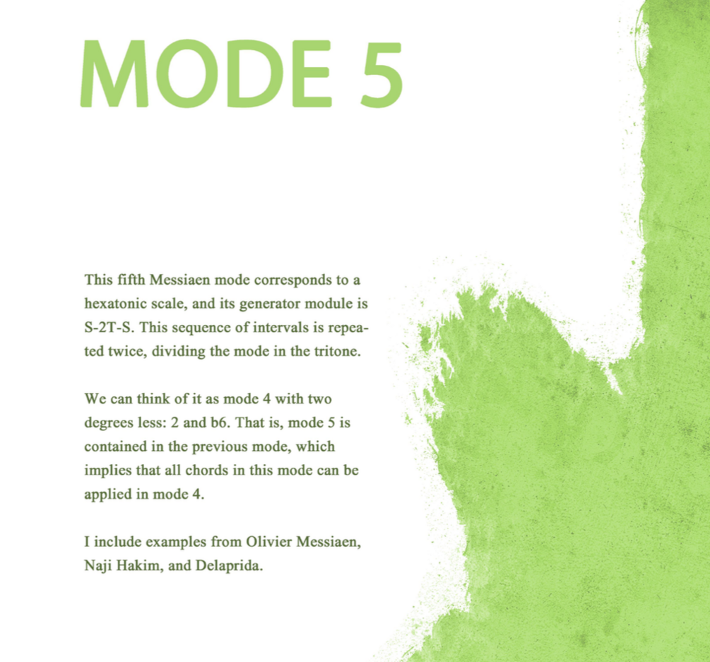 In this fifth volume of the Messiaen Modes for Electric Guitar book series, Rodrigo De la Prida dives again into a refreshing universe of multiple possibilities.